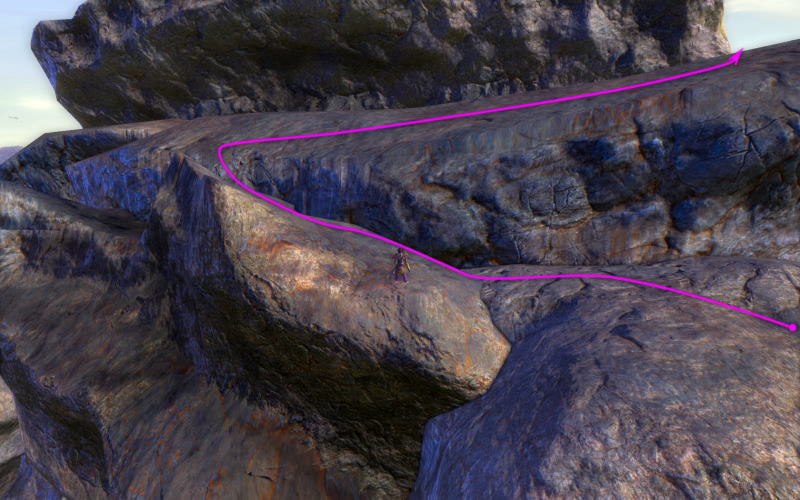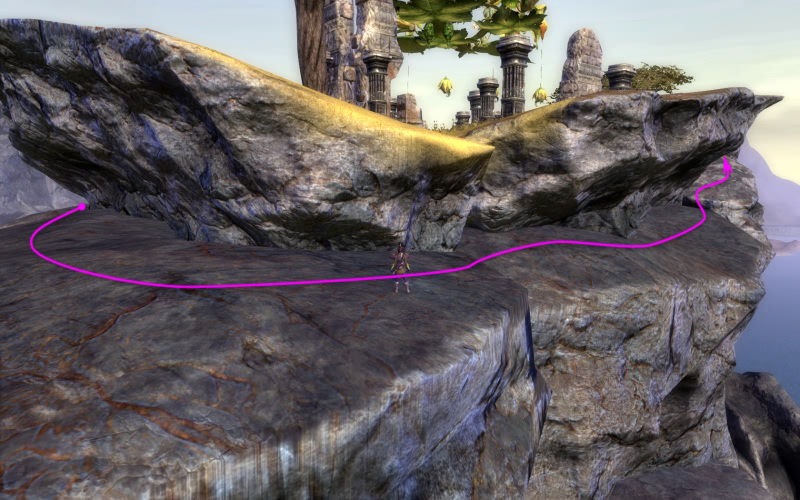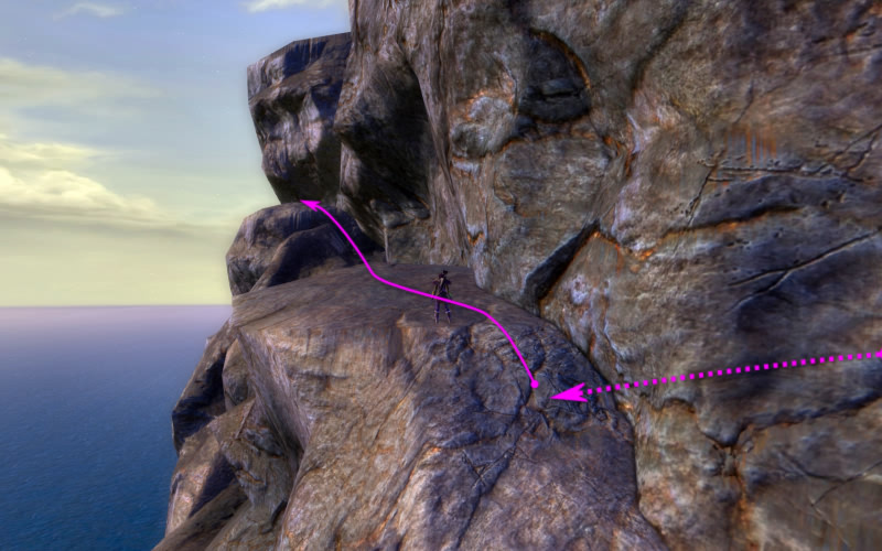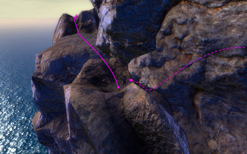 An dieser Klippe sollte, wer hat, "Engelsflug" oder "Mächtiger Sprung" zum Einsatz kommen; die anderen müssen wohl auf ihr Reittier vertrauen.